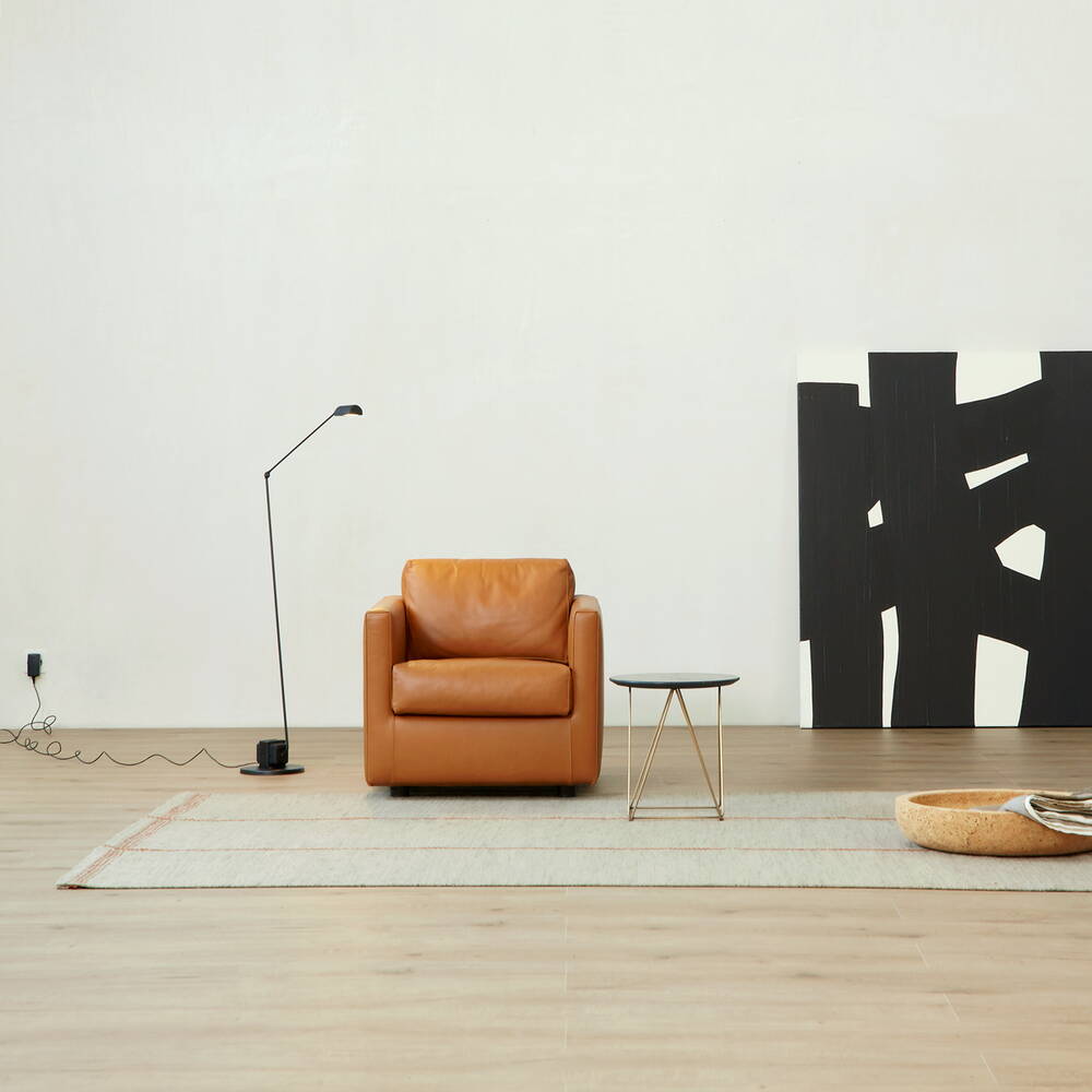 Grace 2. Lounge with classic frame in solid wood. Suspension with elastic straps on steel-frame. Upholstery in multy-density polyurethane foam and Dacron® padding. Anti-skid feet in black pastic.