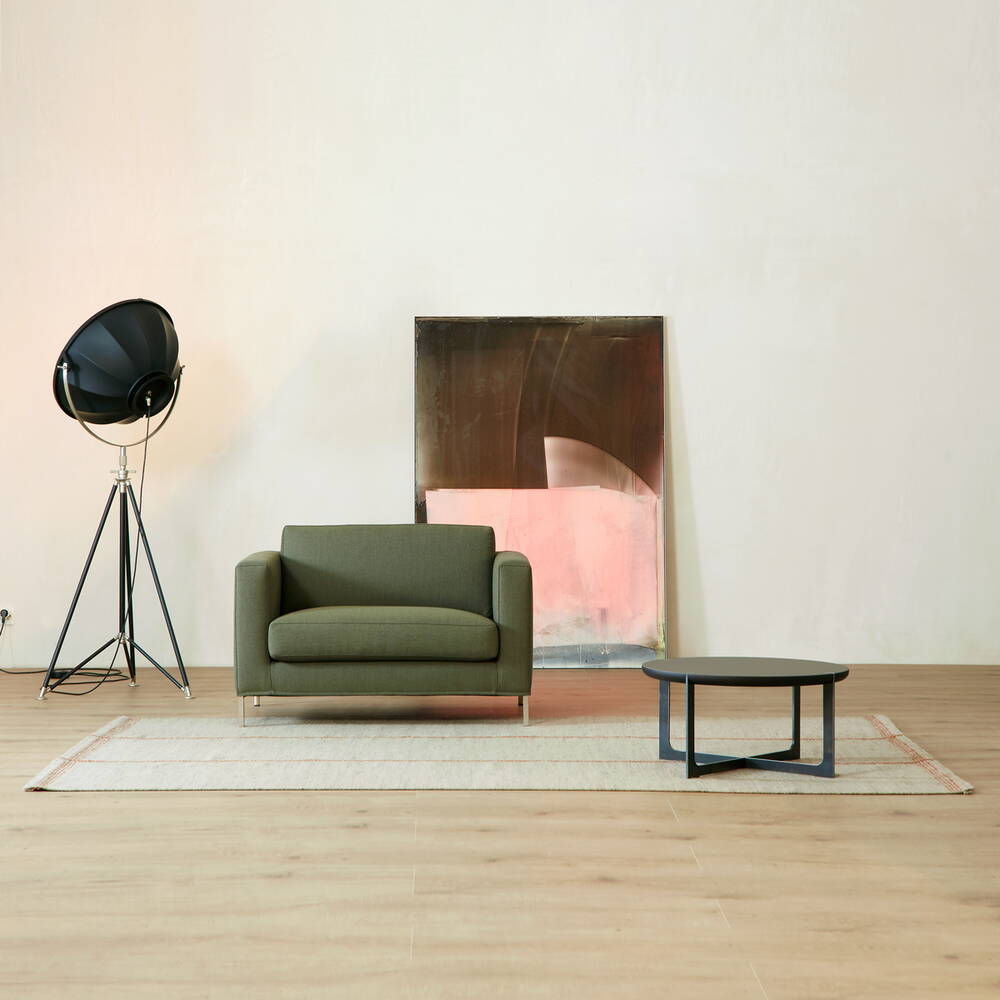 Lizard de Luxe. Sofa, fauteuil et pouf avec structure classique en bois massive et ceintures élastiques dans un cadre d'acier. Rembourrage en mousse polyuréthane de plusieurs densités et Dacron®. Pieds antiglissants en plastique noir.